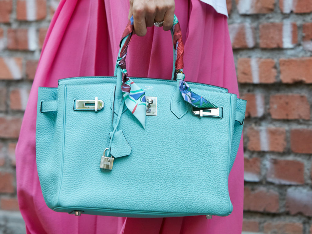 Pre-loved. Good condition. A few small smudges may come out with a specialty cleaning. Light wear on pocket edges.