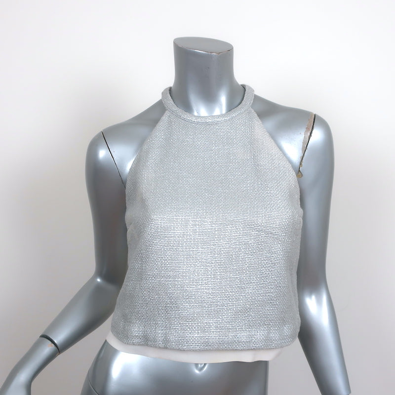 A.L.C. Crop Top Daisy Silver Woven Cotton Size 4 Layered-Hem Tank