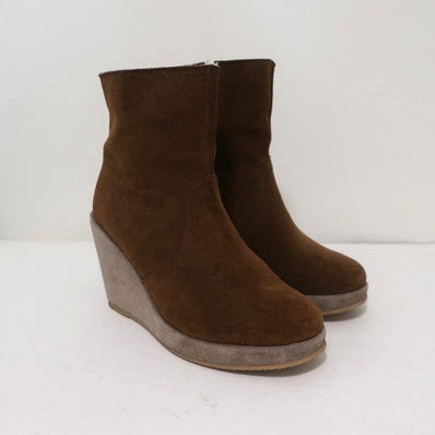 A.P.C. Shearling Wedge Booties Gaya Brown Suede Size 38 Platform Ankle...