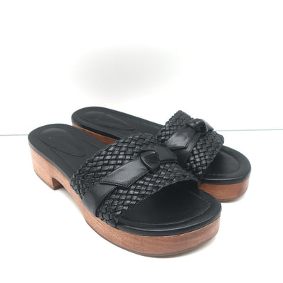 Alexandre Birman Wood Clog Sandals Clarita Black Woven Leather Size 37.5