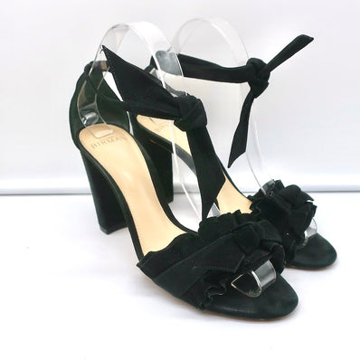 Alexandre Birman Sandals Lupita Black Ruffled Suede Size 37.5 Ankle Ti...