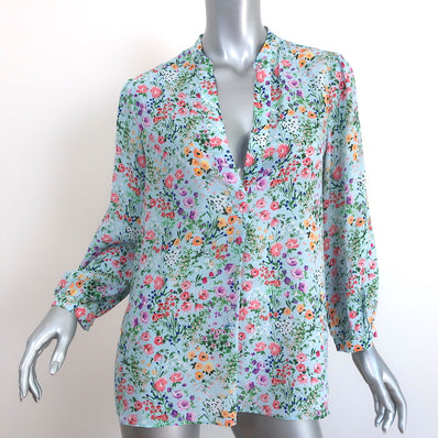 Alice + Olivia Henley Blouse Sheila Light Blue Floral Print Silk Size ...