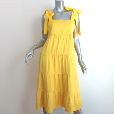 Alice + Olivia Cynthia Bow-Strap Tiered Midi Dress Yellow Size 6