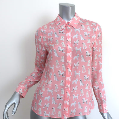 Alice + Olivia Button Down Blouse Willa Pink Poodle Print Silk Size Sm...