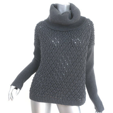 Alice + Olivia Cowl Neck Sweater Charcoal Wool Mixed Knit Size Large