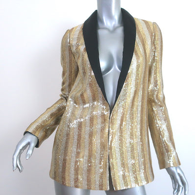 Alice + Olivia Jace Sequined Blazer Gold Size Extra Small Open-Front J...