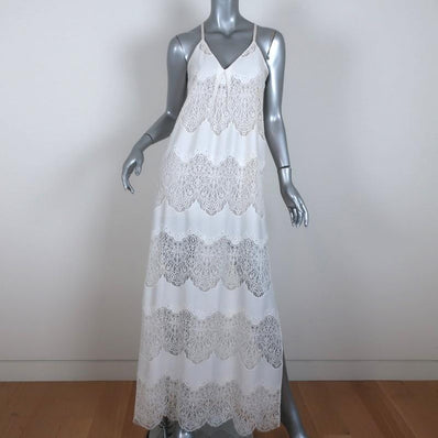 Alice + Olivia Maxi Dress Vandy White Lace-Paneled Satin Size Extra Small