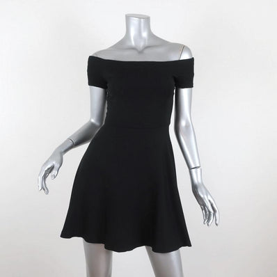 Alice + Olivia Off the Shoulder Mini Dress Carisi Black Stretch Jersey...
