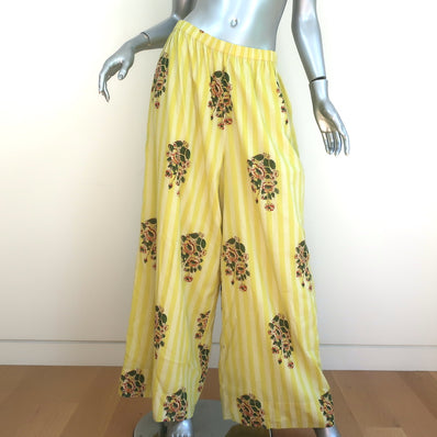 Alix of Bohemia Margie Wide Leg Pants Yellow Floral Striped Cotton Siz...