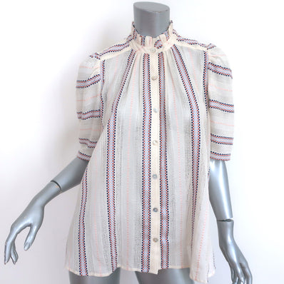 Alix of Bohemia Annabel Puff Sleeve Shirt Ricrac Stripe Cotton Size Small