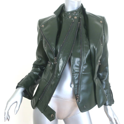 Altuzarra Faux Leather Biker Jacket Dark Green Size 38