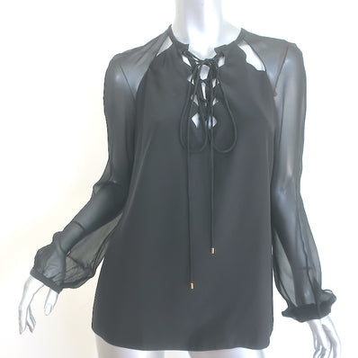 Altuzarra Benny Lace-Up Top Black Silk Size 40 Long Sleeve Blouse