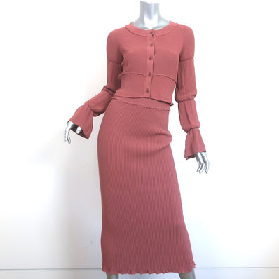 Altuzarra Matching Cardigan & Midi Skirt Set Pink Ribbed Knit Size Ext...