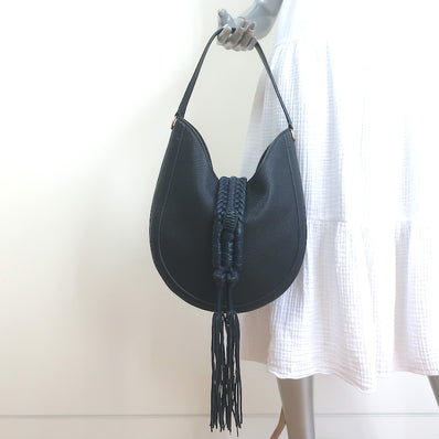 Altuzarra Ghianda Knot Hobo Navy Grained Leather Large Shoulder Bag