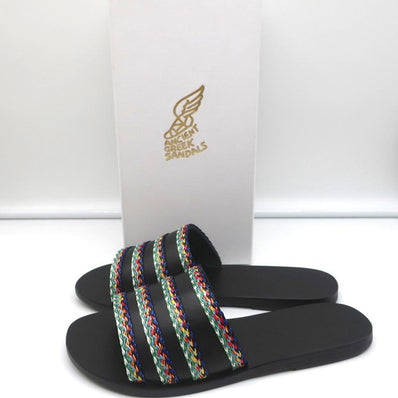 Ancient Greek Sandals Helene Slides Black Braided Leather Size 38