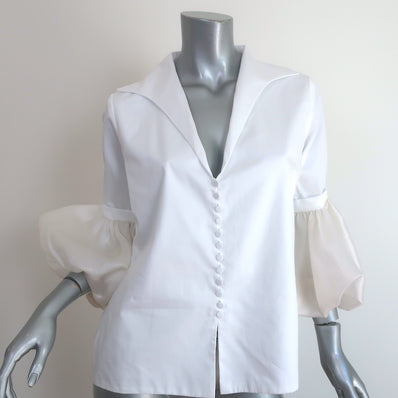 Andres Otalora Bell Sleeve Blouse White Cotton & Organza Size 6 Button...
