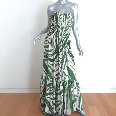Andres Otalora Maxi Dress Kalal Green/Cream Printed Pleated Crepe Size 6