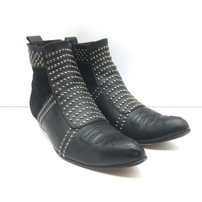 ANINE BING Charlie Gold-Studded Ankle Boots Black Leather & Suede Size 37