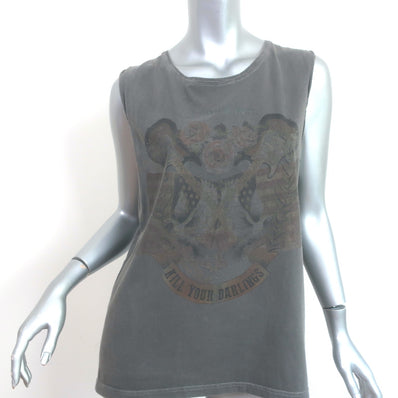 ANINE BING Kill Your Darlings Muscle Tank Top Gray Cotton Size Small
