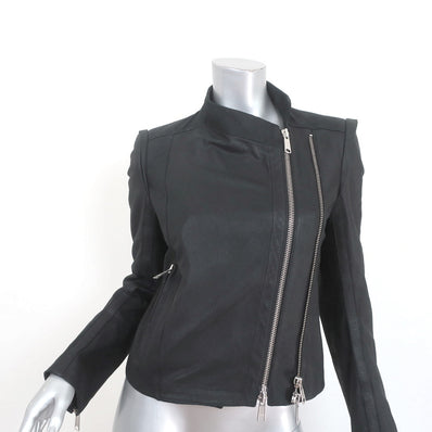 Ann Demeulemeester Angelina Double-Zip Leather Biker Jacket Black Size 36