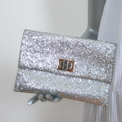 Anya Hindmarch Valorie Glitter Clutch Silver Small Evening Bag
