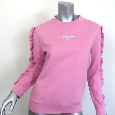Balmain Ruffle-Trimmed Crewneck Sweatshirt Pink Size Y14 / Womens Extr...
