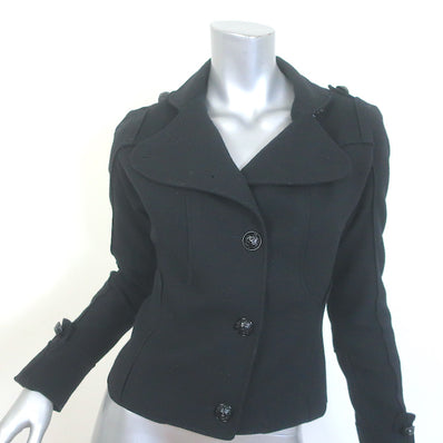 Balmain Double Breasted Blazer Jacket Black Stretch Wool Size 38