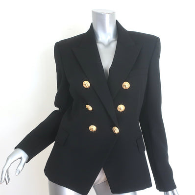 Balmain Double Breasted Wool Blazer Black Size 38 NEW