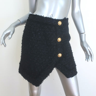 Balmain Button-Embellished Asymmetric Tweed Mini Skirt Black Size 34