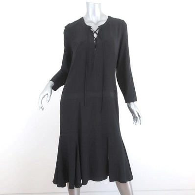 Barbara Bui Lace-Up Dress Black Silk Size 42 Long Sleeve Shift