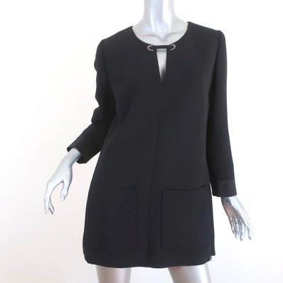 Barbara Bui Mini Dress Black Satin-Trim Crepe Size 42 Long Sleeve Tunic