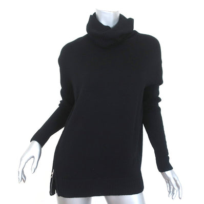Barbara Bui Turtleneck Sweater Black Wool Size Extra Small Side-Zip Pu...
