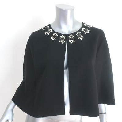 BCBGMAXAZRIA Crystal-Embellished Capelet Jacket Black Crepe Size Mediu...