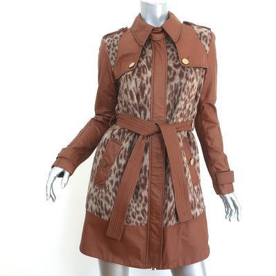 BCBGMAXAZRIA Trench Coat Blake Leopard Faux Fur & Leather Size Extra S...