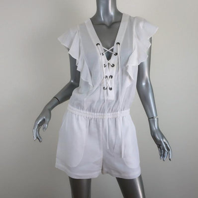 BCBGMAXAZRIA Kenzi Lace-Up Romper White Size Small NEW