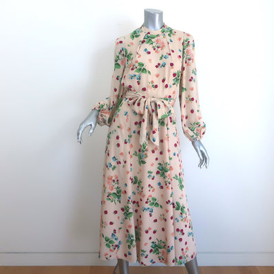 Beulah Sonia Blouson Sleeve Midi Dress Blush Pink Floral Print Silk Si...