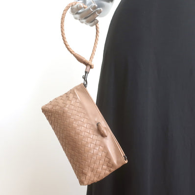 Bottega Veneta Braided Strap Mini Wristlet Clutch Beige Intrecciato Le...