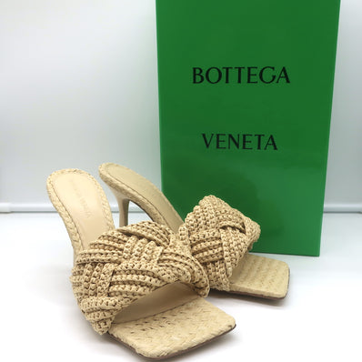 Bottega Veneta Lido Intrecciato Raffia Mules Beige Size 38.5 Open Toe ...