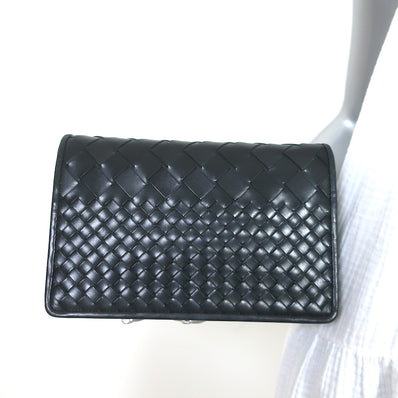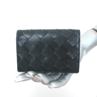 Bottega Veneta Business Card Case Wallet Black Intrecciato Leather