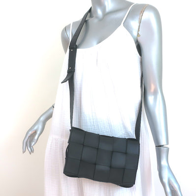 Bottega Veneta Cassette Shoulder Bag Black Intrecciato Leather Crossbody
