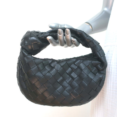 Bottega Veneta Mini Jodie Hobo Bag Black Intrecciato Leather