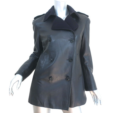 Bottega Veneta Double Breasted Leather Jacket with Cashmere Collar Bla...