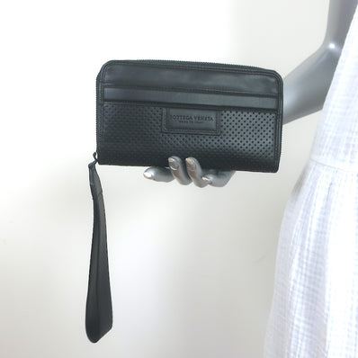 Bottega Veneta Leggero Wristlet Wallet Black Perforated Leather