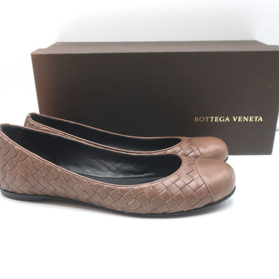 Bottega Veneta Intrecciato Leather Ballet Flats Brown Size 38.5