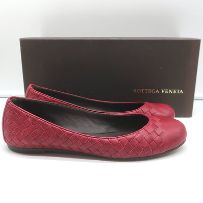 Bottega Veneta Intrecciato Leather Ballet Flats Red Size 38