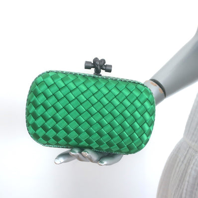 Bottega Veneta Knot Box Clutch Green Snakeskin-Trimmed Satin