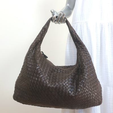 Bottega Veneta Large Veneta Hobo Dark Brown Intrecciato Leather Should...
