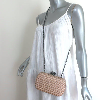 Bottega Veneta Box Knot Clutch Beige Intrecciato Velvet with Snakeskin...