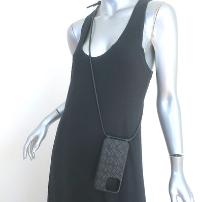 Bottega Veneta iPhone 15 Pro Max Case with Strap Black Intrecciato Rubber