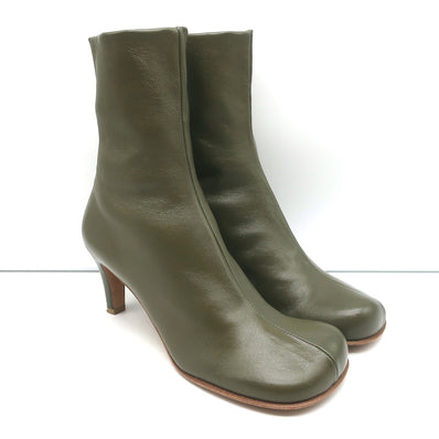 Bottega Veneta Bloc Ankle Boots Olive Stretch Leather Size 36